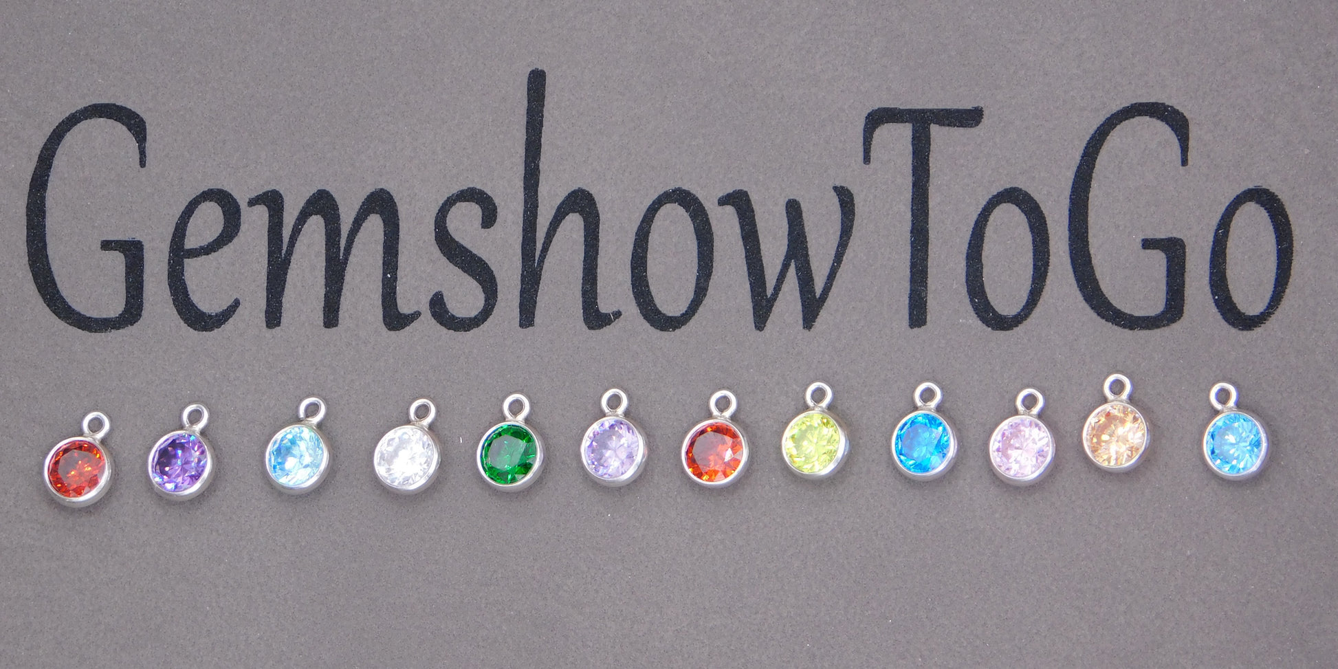 Sterling Silver bezel AAA CZ Birthstone charms. Sold individually.