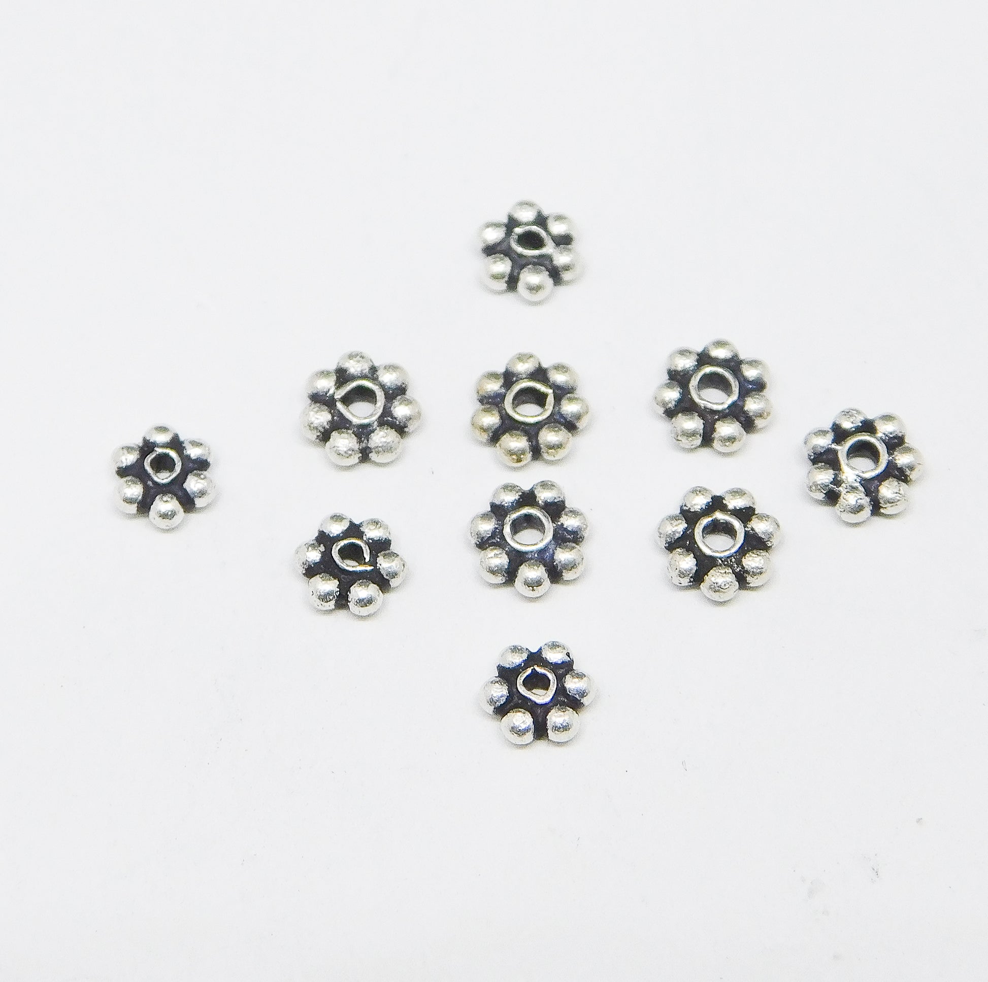 STERLING SILVER DAISY BALI SPACER 5MM. SOLD IN PACKAGES OF 10. ITEM #20109