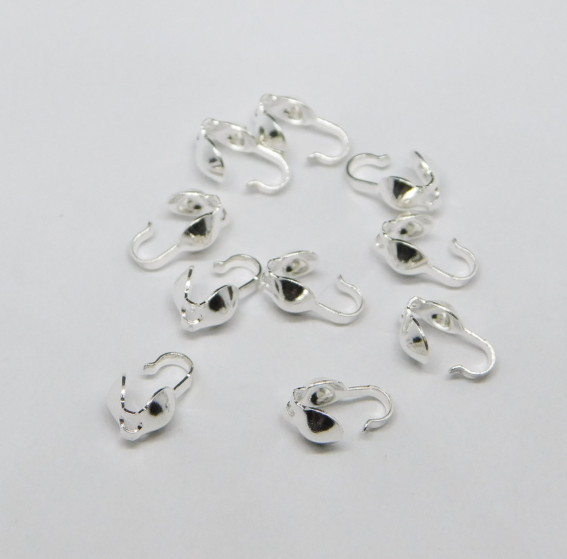 STERLING SILVER CLAM SHELL BEAD TIPS 3.4MM. SOLD IN PACKAGES OF 10. ITEM #20130