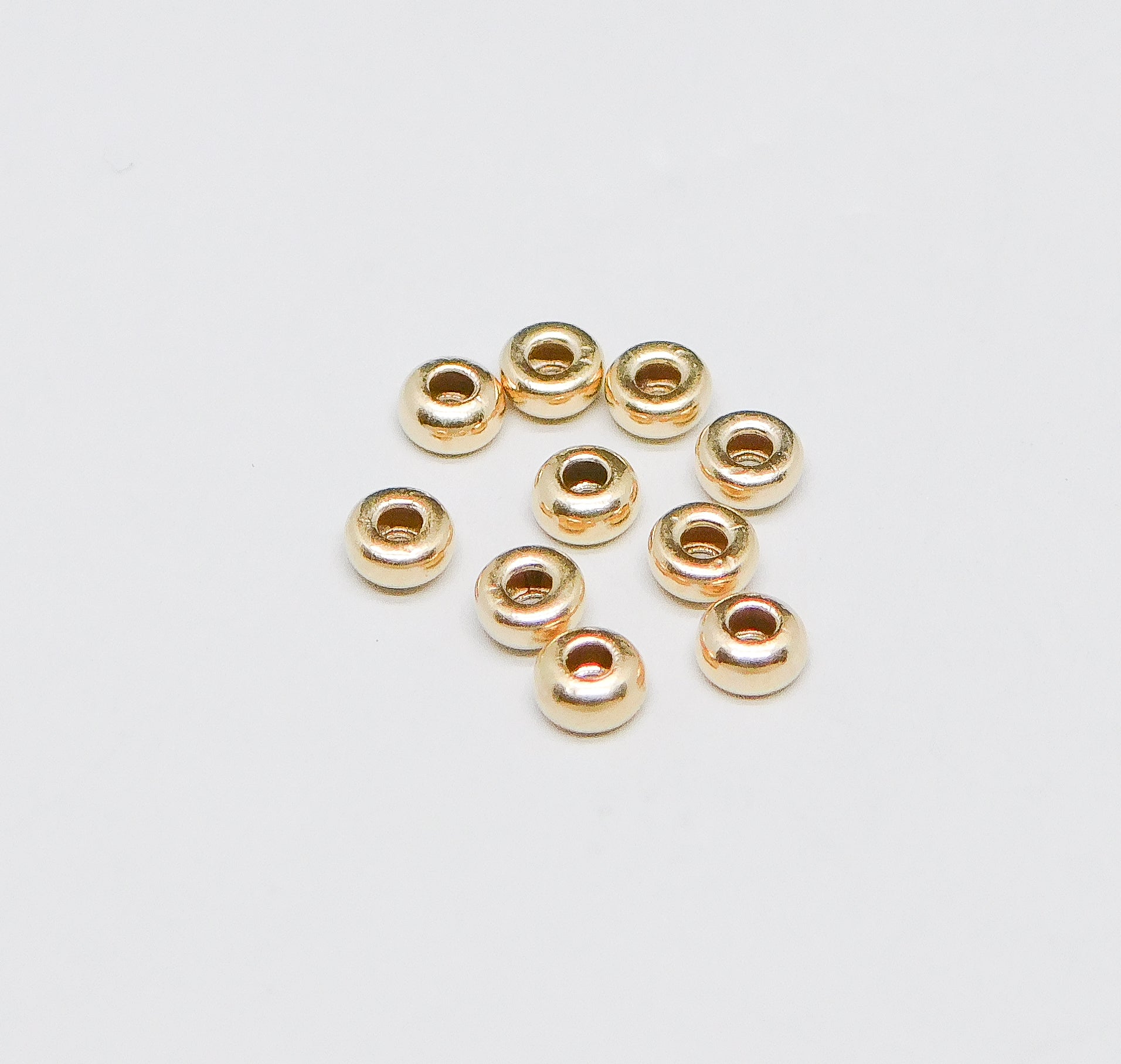 GOLD FILLED BRIGHT RONDELLE BEADS 3MM. SOLD IN PACKAGES OF 10. ITEM #30111