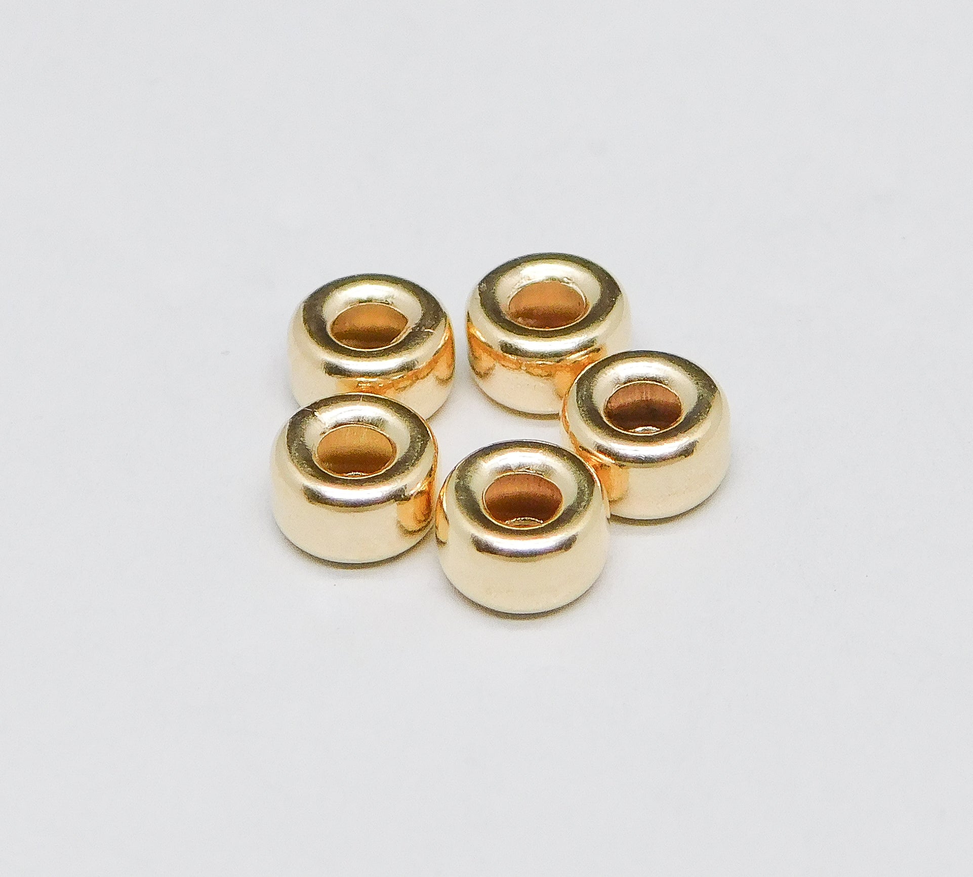 GOLD FILLED BRIGHT RONDELLE BEADS 5MM. SOLD IN PACKAGES OF 5. ITEM #30113