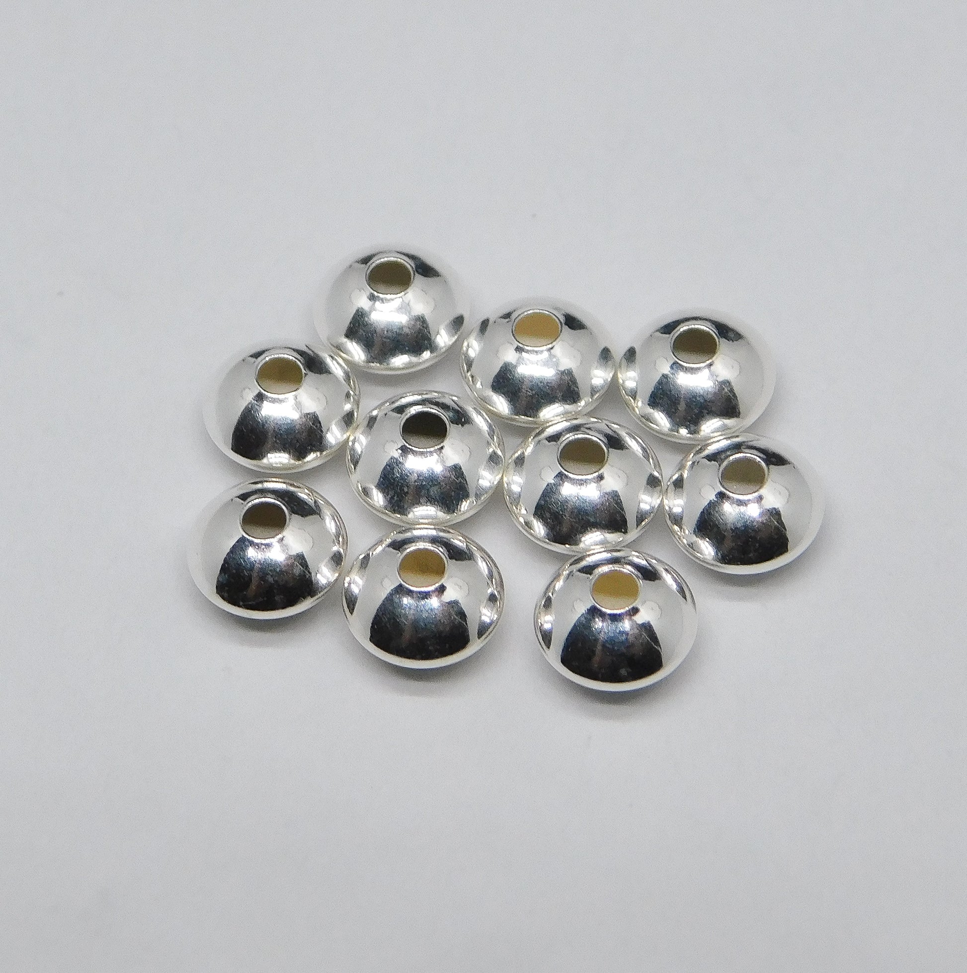 STERLING SILVER BRIGHT SAUCER BEADS 6MM. LIGHT WEIGHT. SOLD IN PACKAGES OF 10. ITEM #20151