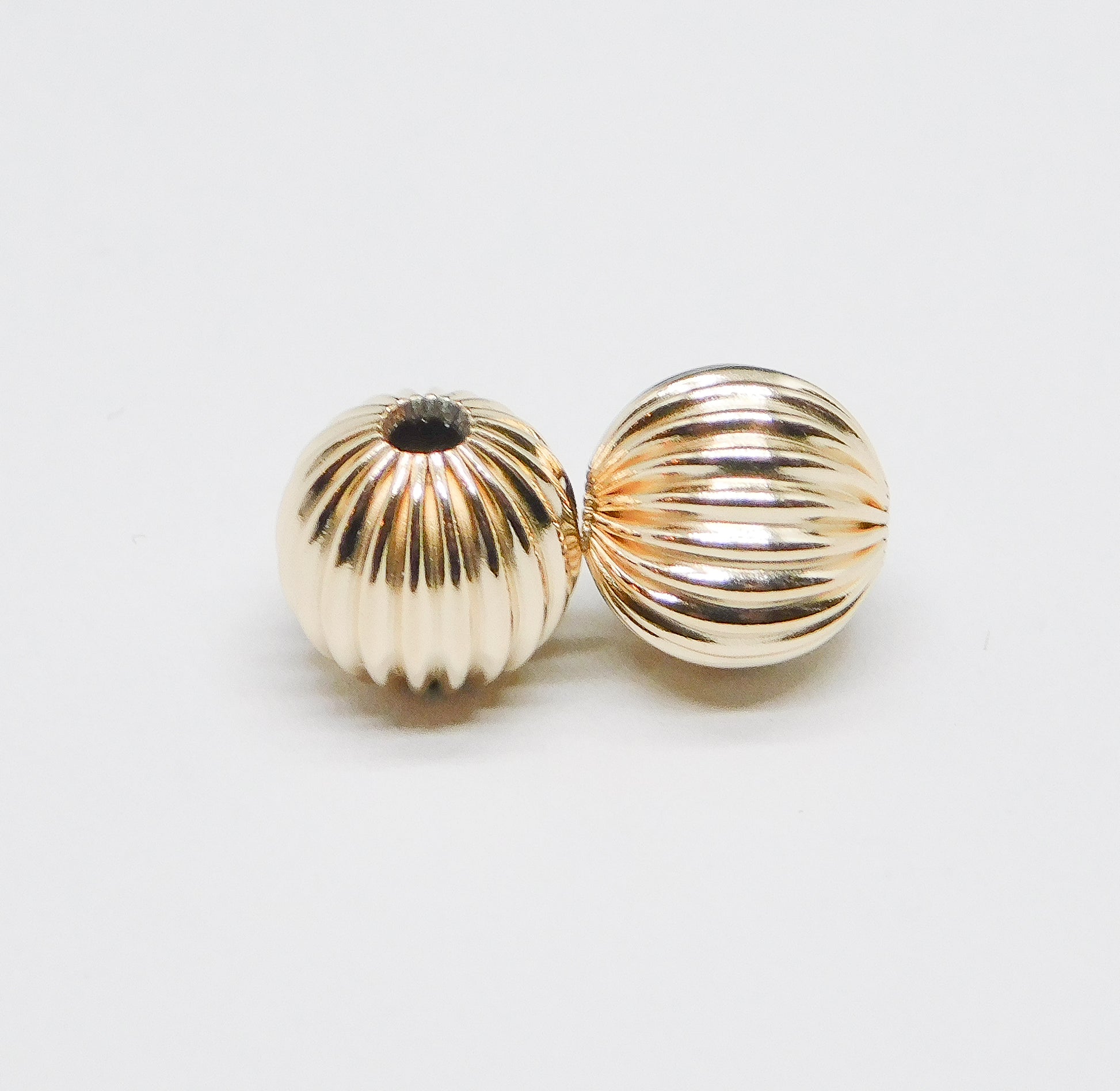 GOLD FILLED CORRUGATED ROUND BEADS 8MM. SOLD IN PACKAGES OF 1. ITEM #30128
