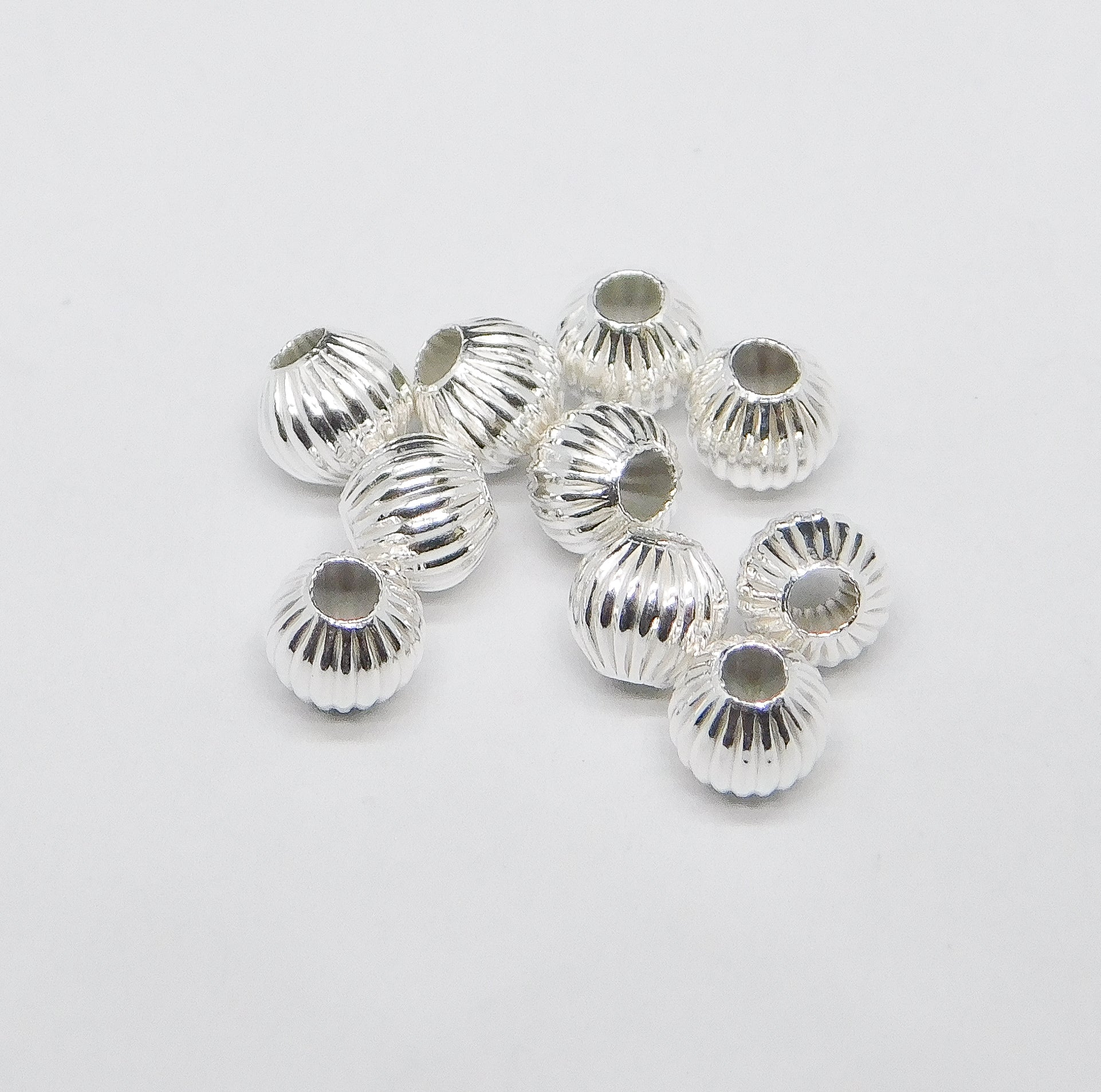 STERLING SILVER CORRUGATED ROUND BEADS 4MM. SOLD IN PACKAGES OF 10. ITEM #20172