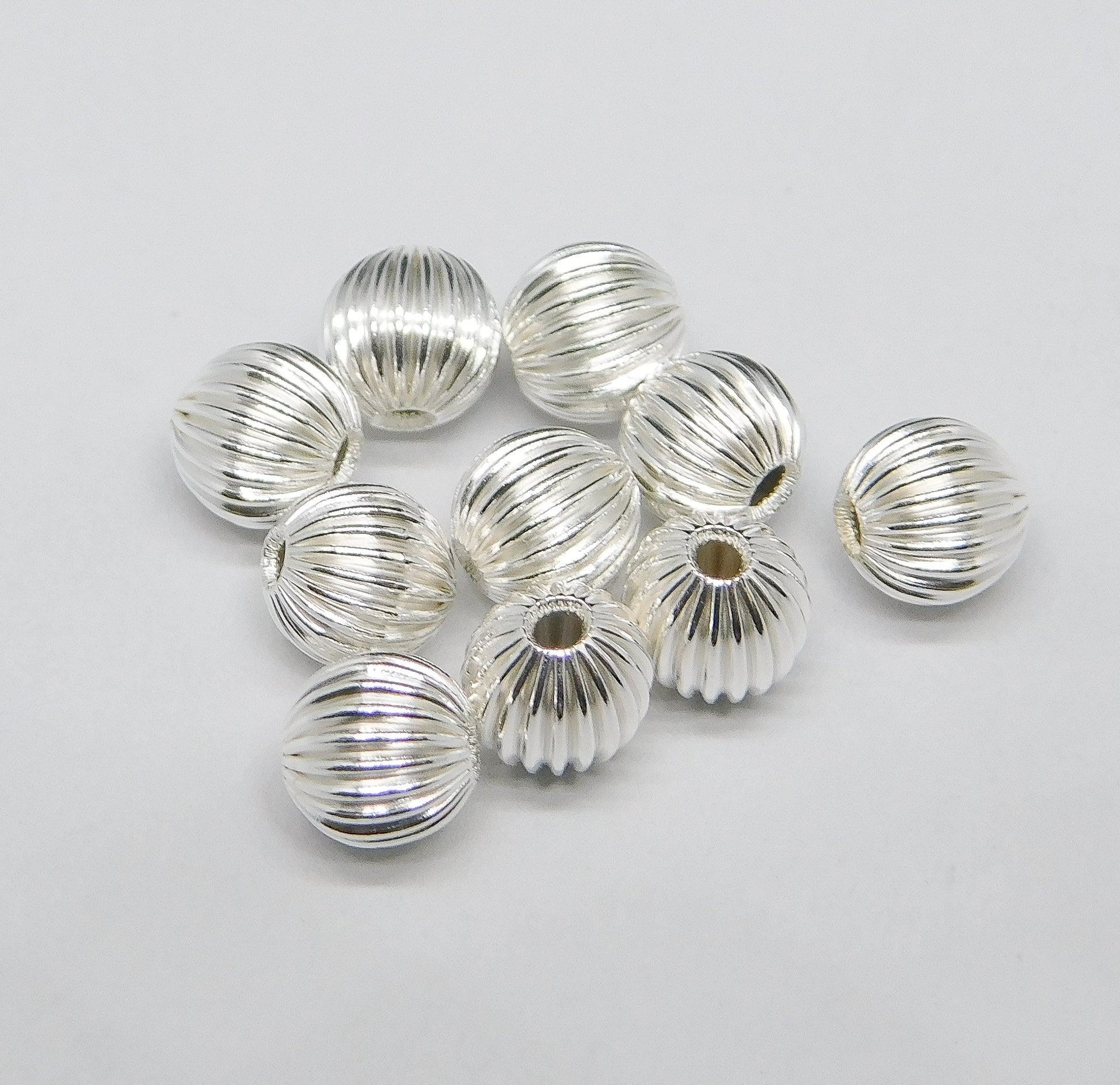STERLING SILVER CORRUGATED ROUND BEADS 5MM. SOLD IN PACKAGES OF 10. ITEM #20174