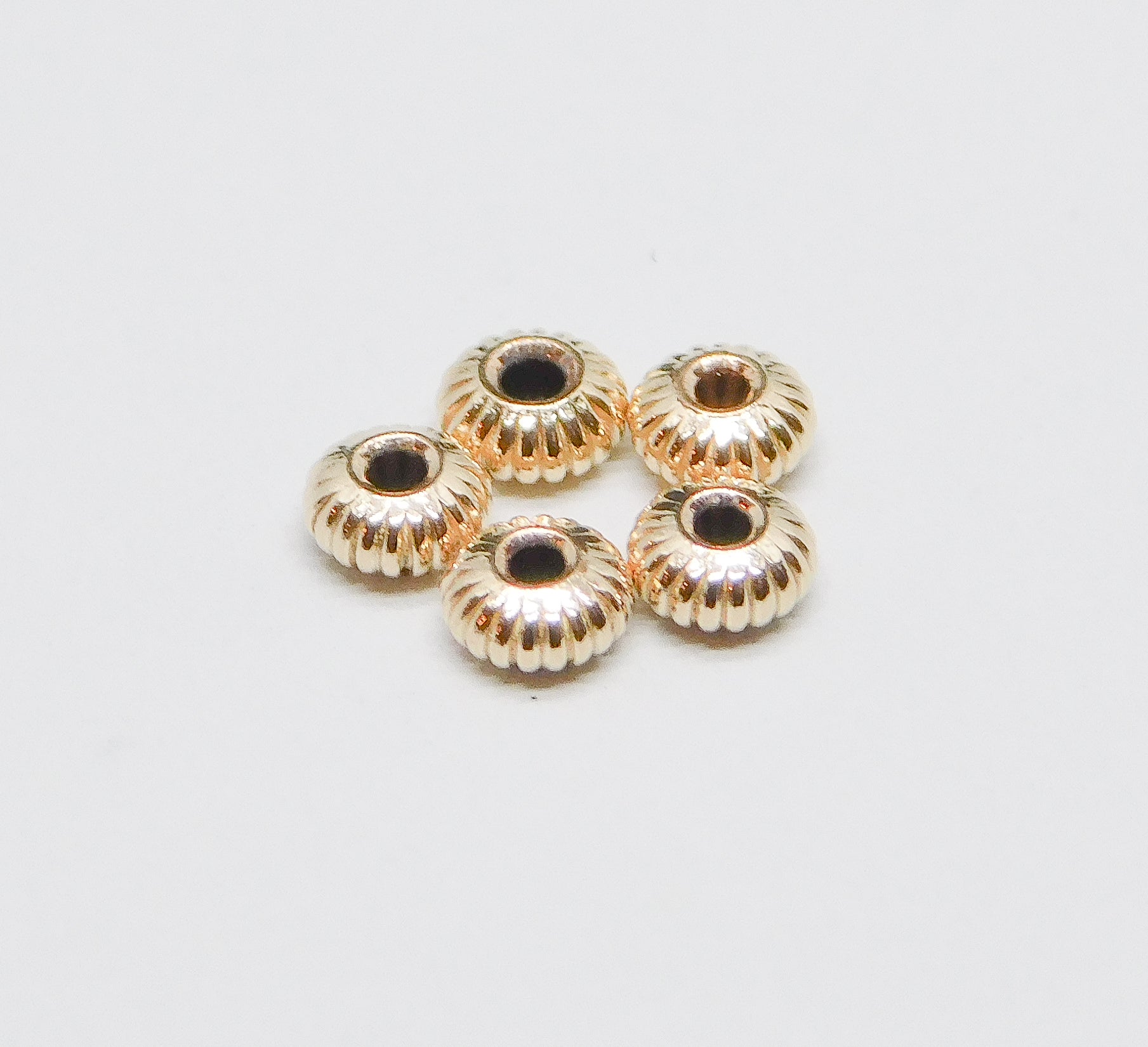 GOLD FILLED CORRUGATED SAUCER BEADS 2MM. SOLD IN PACKAGES OF 5. ITEM #30129