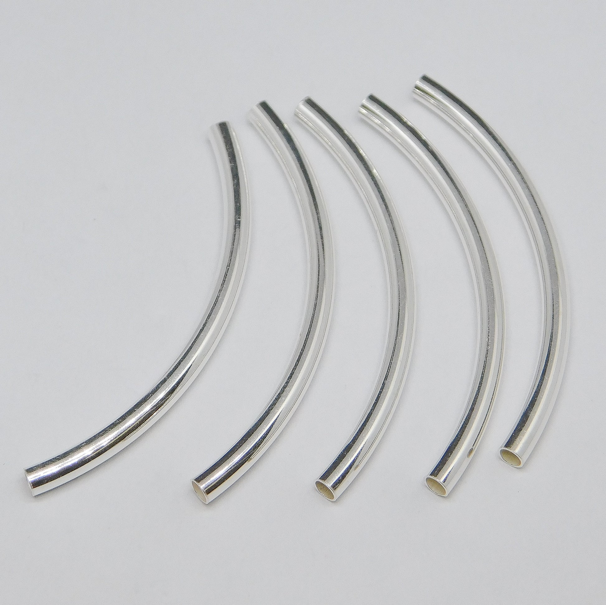 STERLING SILVER CURVED TUBES 2.5x40MM. SOLD IN PACKAGES OF 5. ITEM #20186