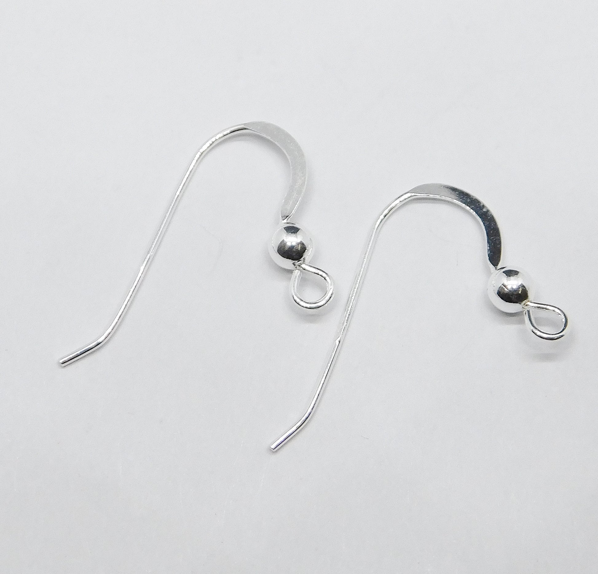 STERLING SILVER FLAT WIRE FISH HOOK EAR WIRES 19.5MM WITH 2.5MM BALL. SOLD IN PACKAGES OF 2. ITEM #20214