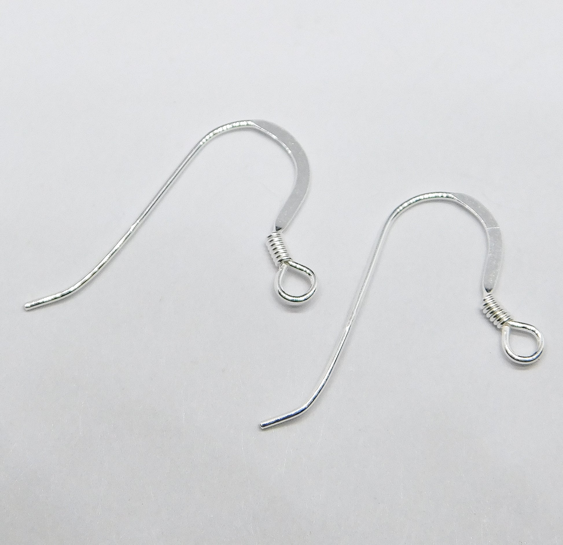 STERLING SILVER FLAT WIRE FISH HOOK EAR WIRES 19.5MM WITH COIL. SOLD IN PACKAGES OF 2. ITEM #20216