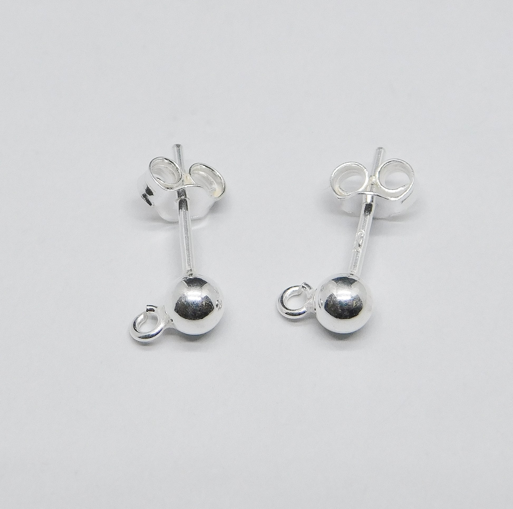 STERLING SILVER EARRING POST WITH 4MM BALL AND RING. NUTS INCLUDED. SOLD IN PACKAGES OF 2. ITEM #20192