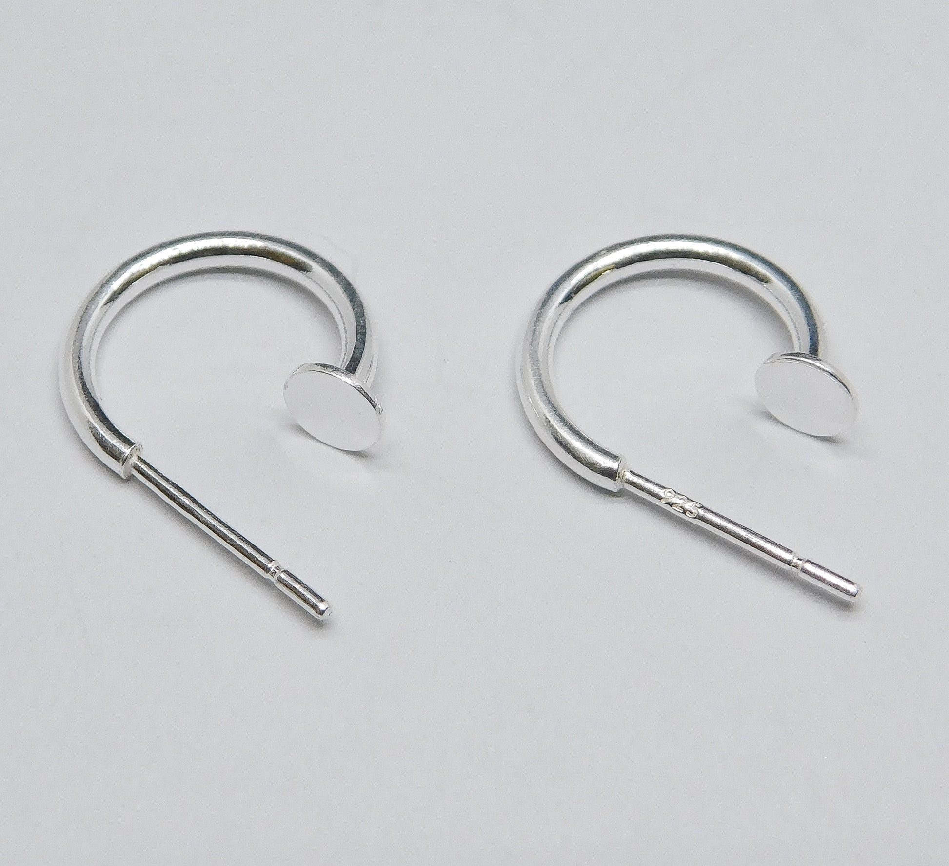 STERLING SILVER POST EARRING WITH HOOP 11.75MM AND FLAT END. SOLD IN PACKAGES OF 2. ITEM #20228