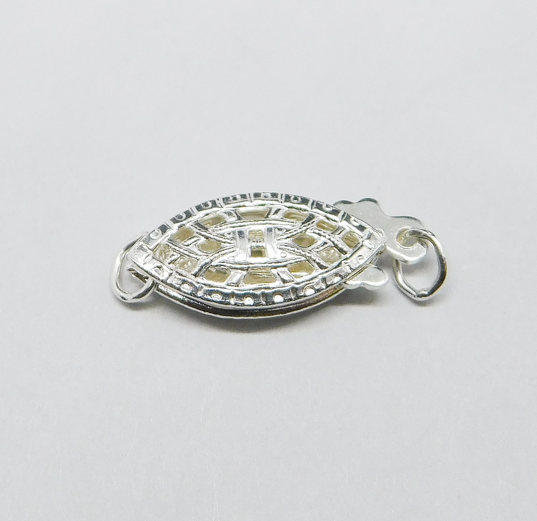 STERLING SILVER OVAL FISH HOOK FILIGREE CLASP 15x6MM. SOLD IN PACKAGES OF 1. ITEM #20206