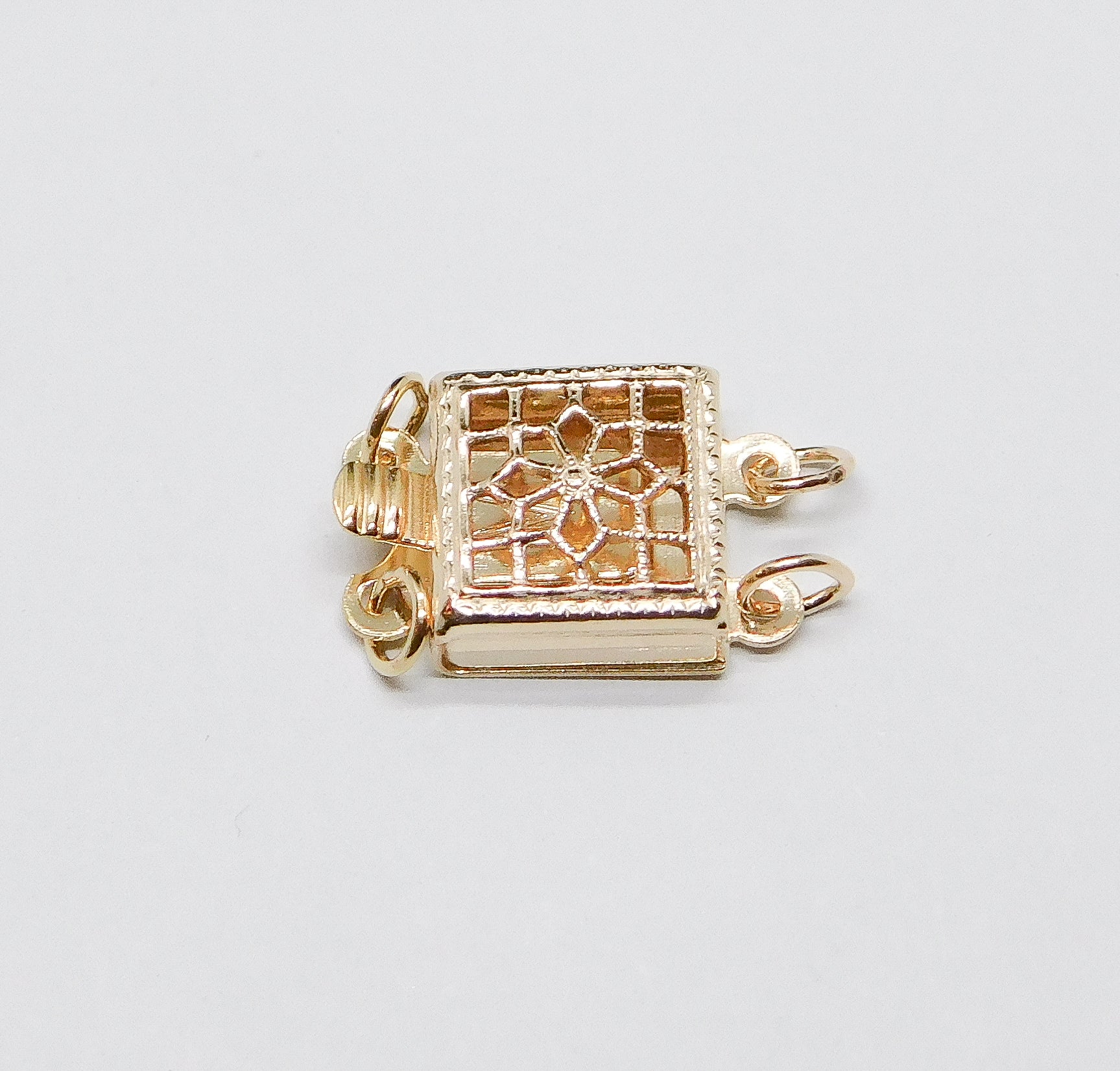 GOLD FILLED SQUARE FILIGREE 2- STRAND CLASP 8.5MM. SOLD IN PACKAGES OF 1. ITEM #30184