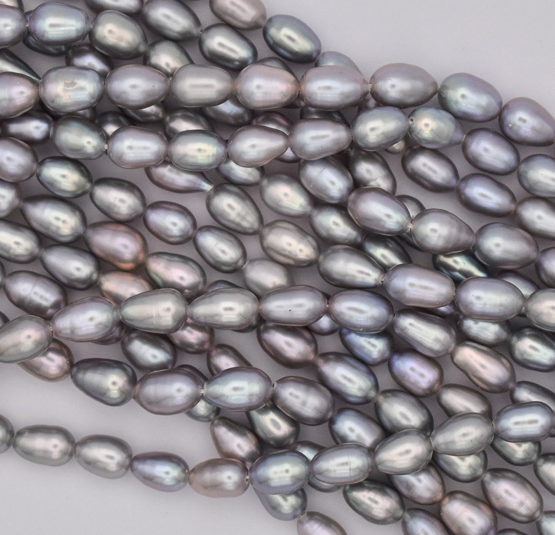 FRESHWATER PEARLS ~6x8MM SILVER. 15" STRAND