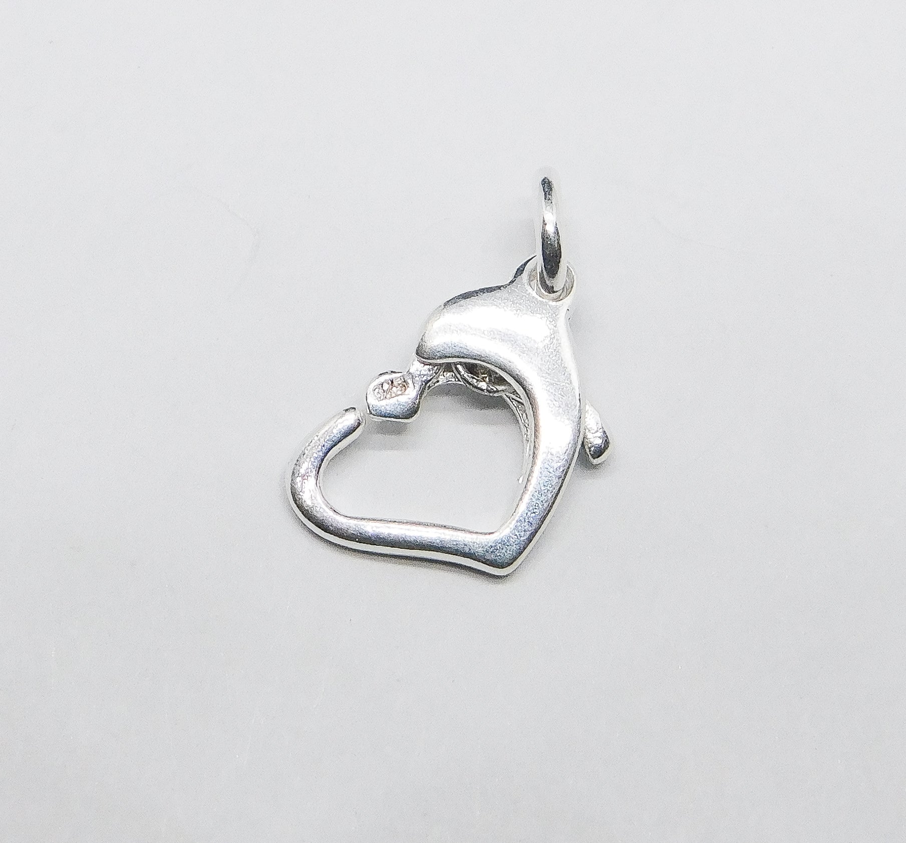 STERLING SILVER FLOATING HEART CLASP 12MM. SOLD IN PACKAGES OF 1. ITEM #20221