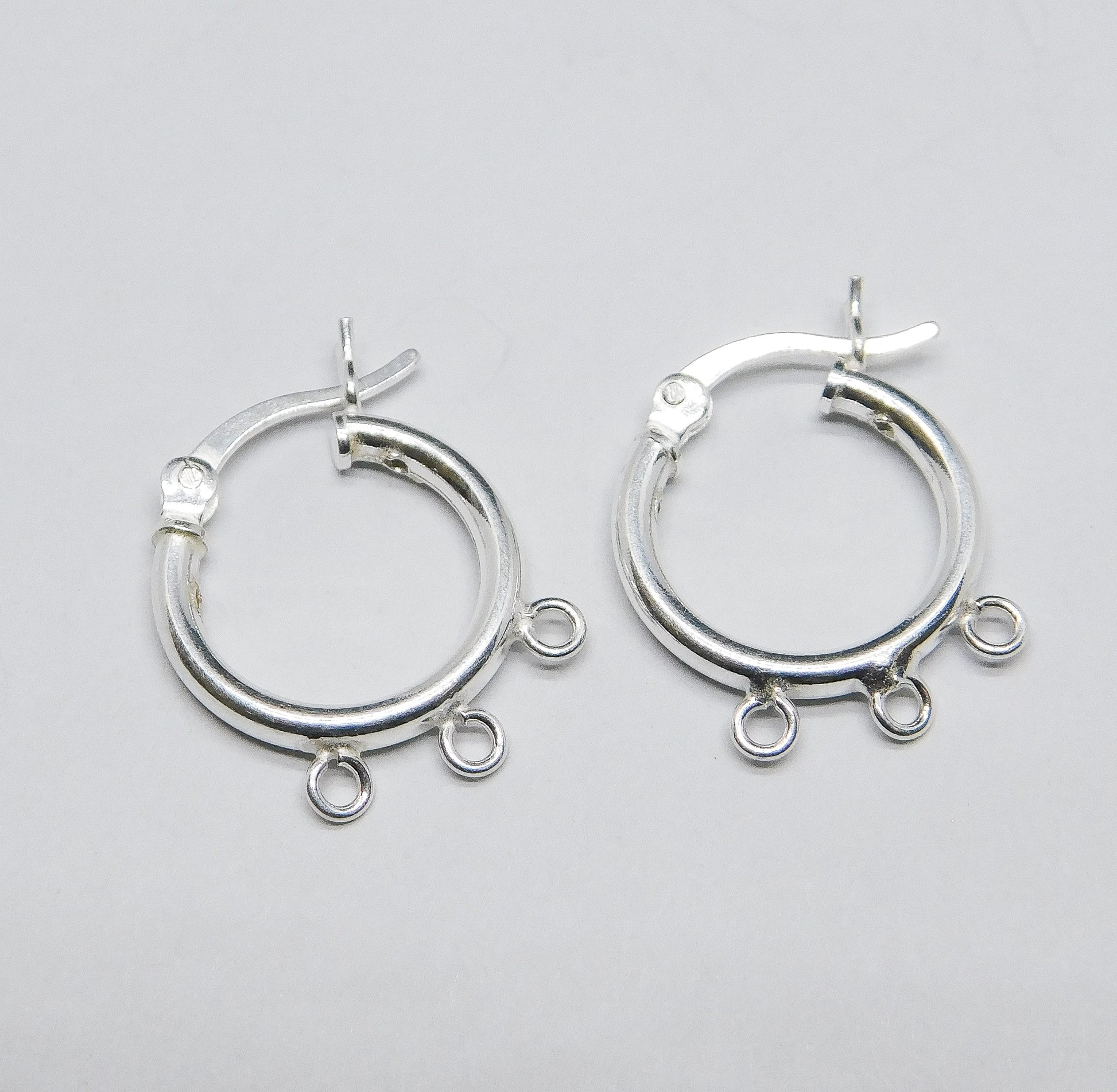 STERLING SILVER HOOPS 14MM WITH 3 RINGS. SOLD IN PACKAGES OF 2. ITEM #20229