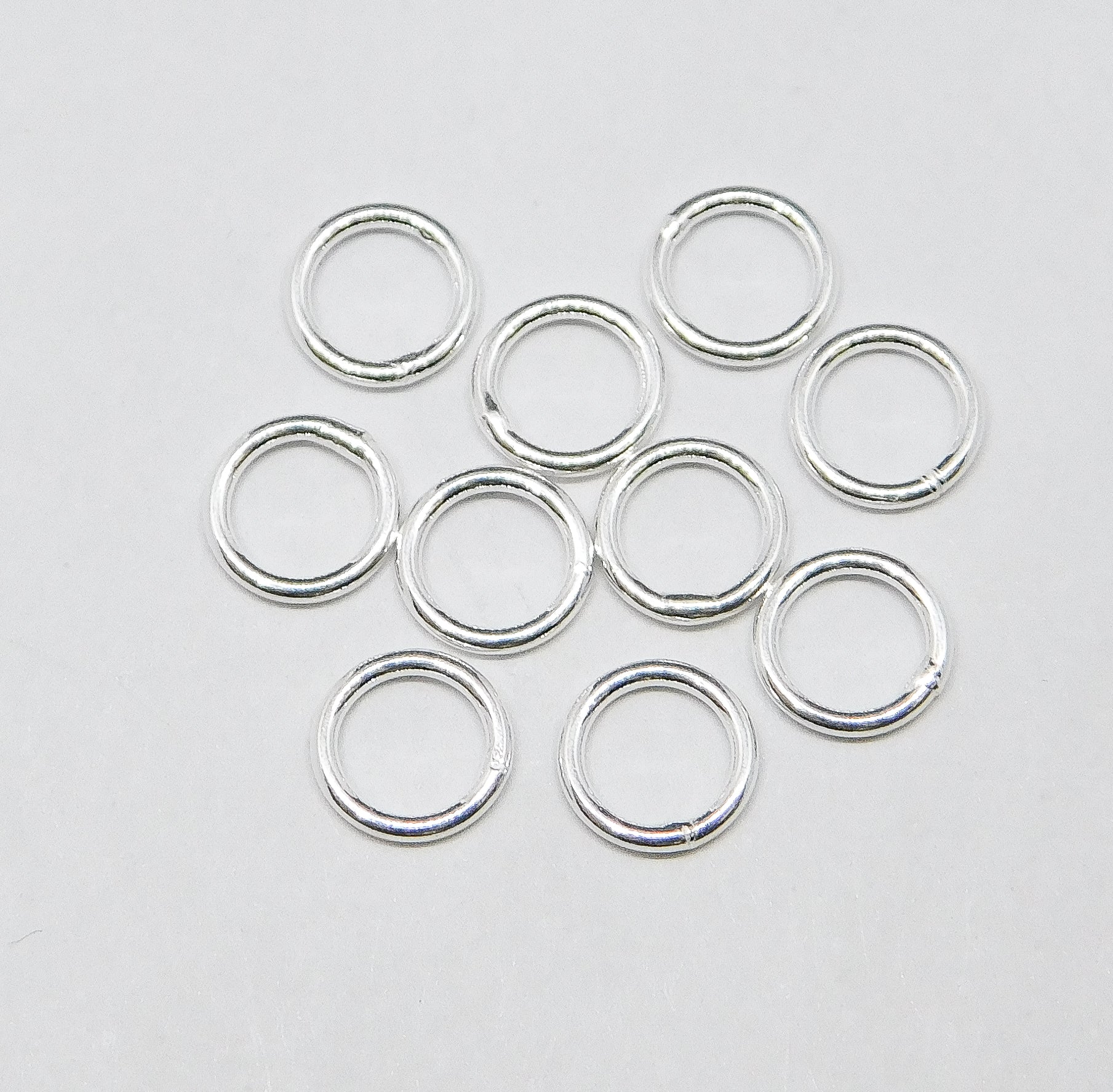 STERLING SILVER ROUND "CLOSED" JUMP RING 5MM (21GA.=.28). SOLD IN PACKAGES OF 10. ITEM #20265