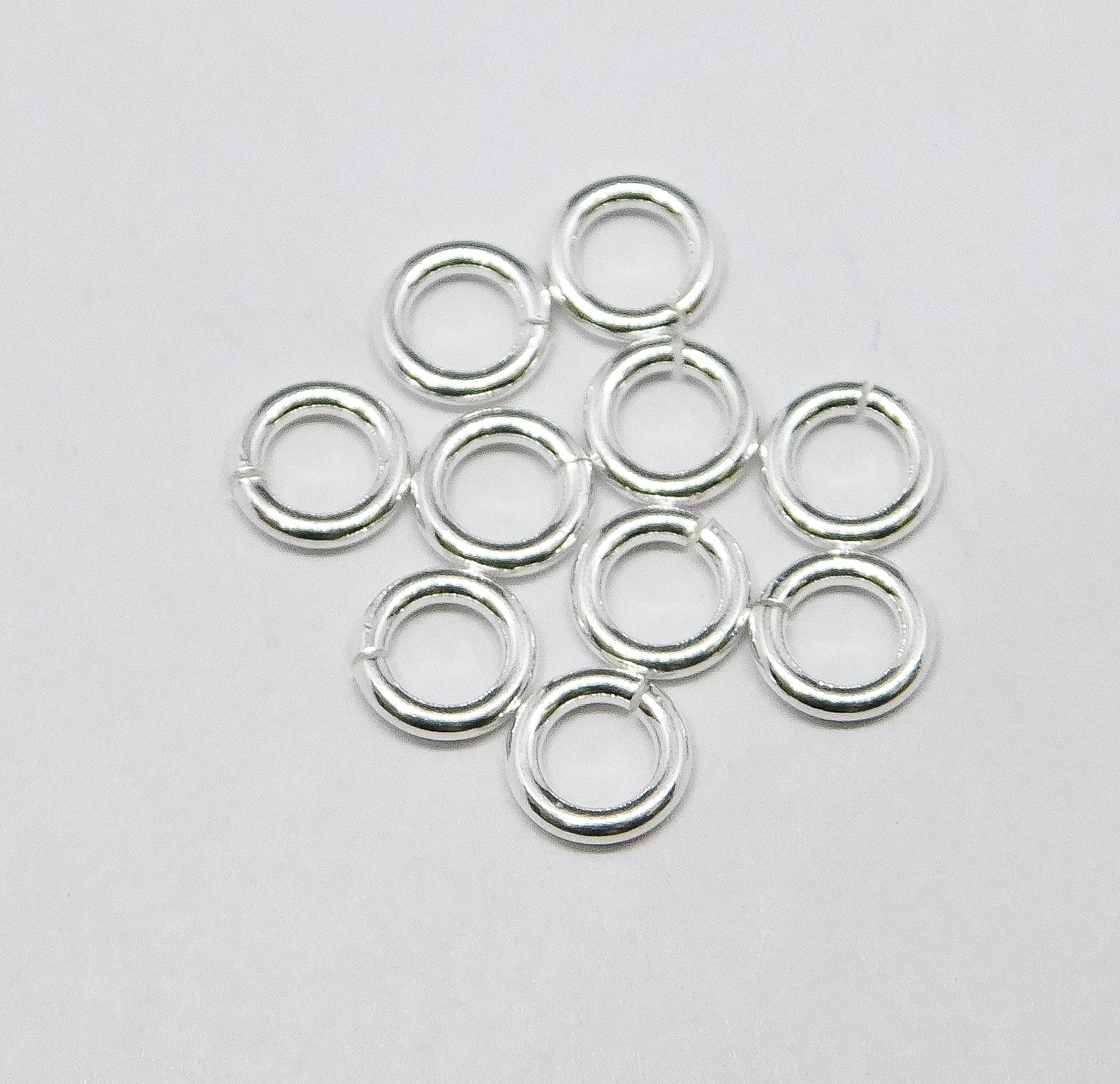 STERLING SILVER ROUND "OPEN" JUMP RING 5MM (18GA.=.40). SOLD IN PACKAGES OF 10. ITEM #20273
