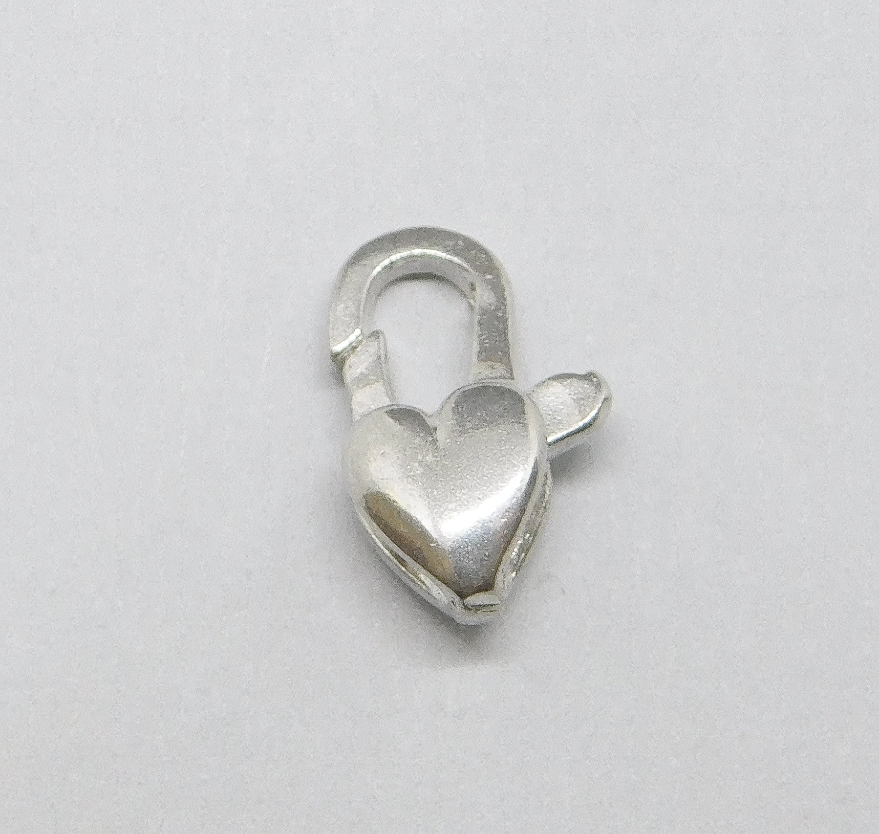 STERLING SILVER HEART-SHAPED LOBSTER CLASP 6x12MM WITHOUT RING. SOLD IN PACKAGES OF 1. ITEM #20240