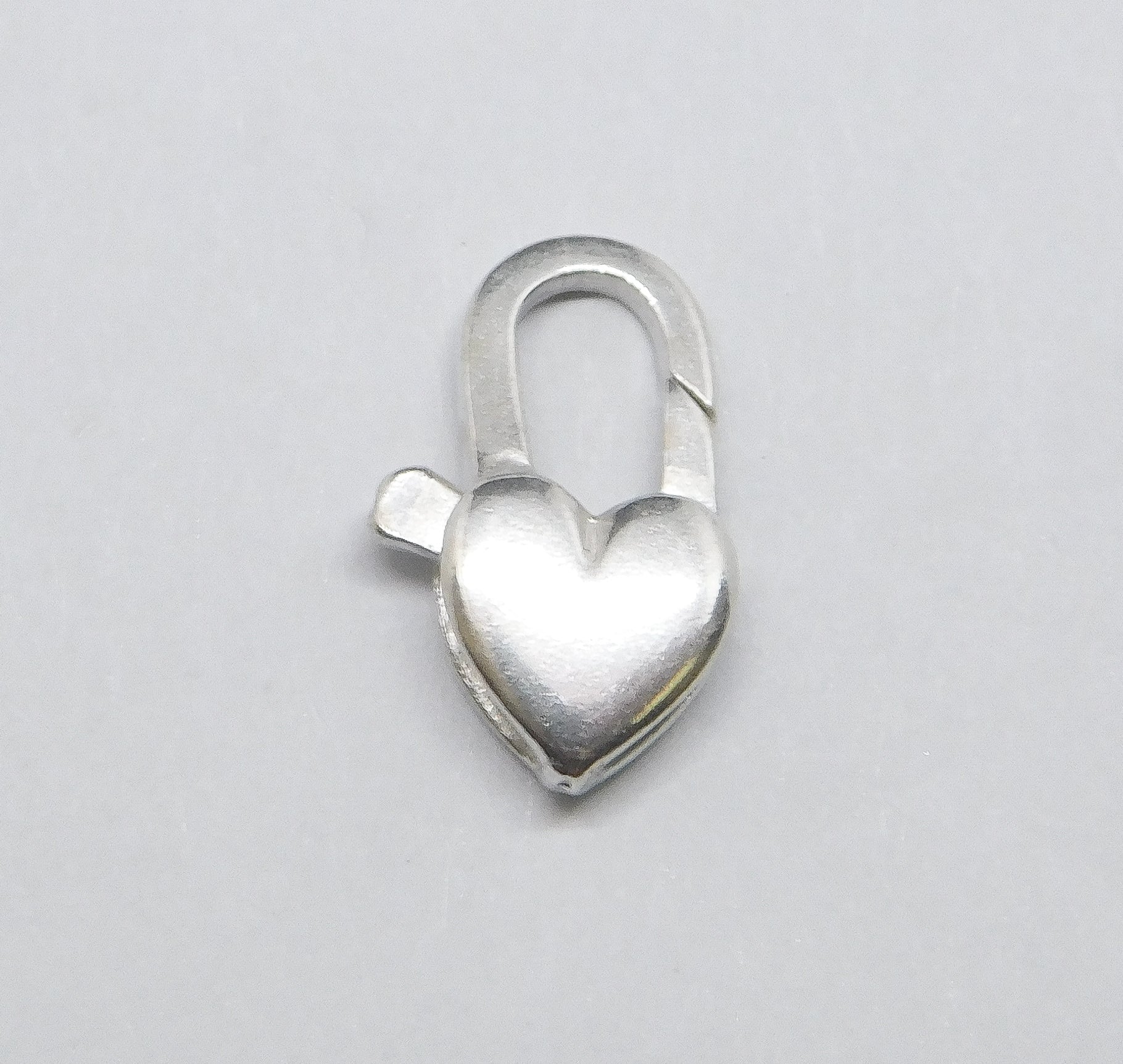 STERLING SILVER HEART-SHAPED LOBSTER CLASP 8x16MM WITHOUT RING. SOLD IN PACKAGES OF 1. ITEM #20240