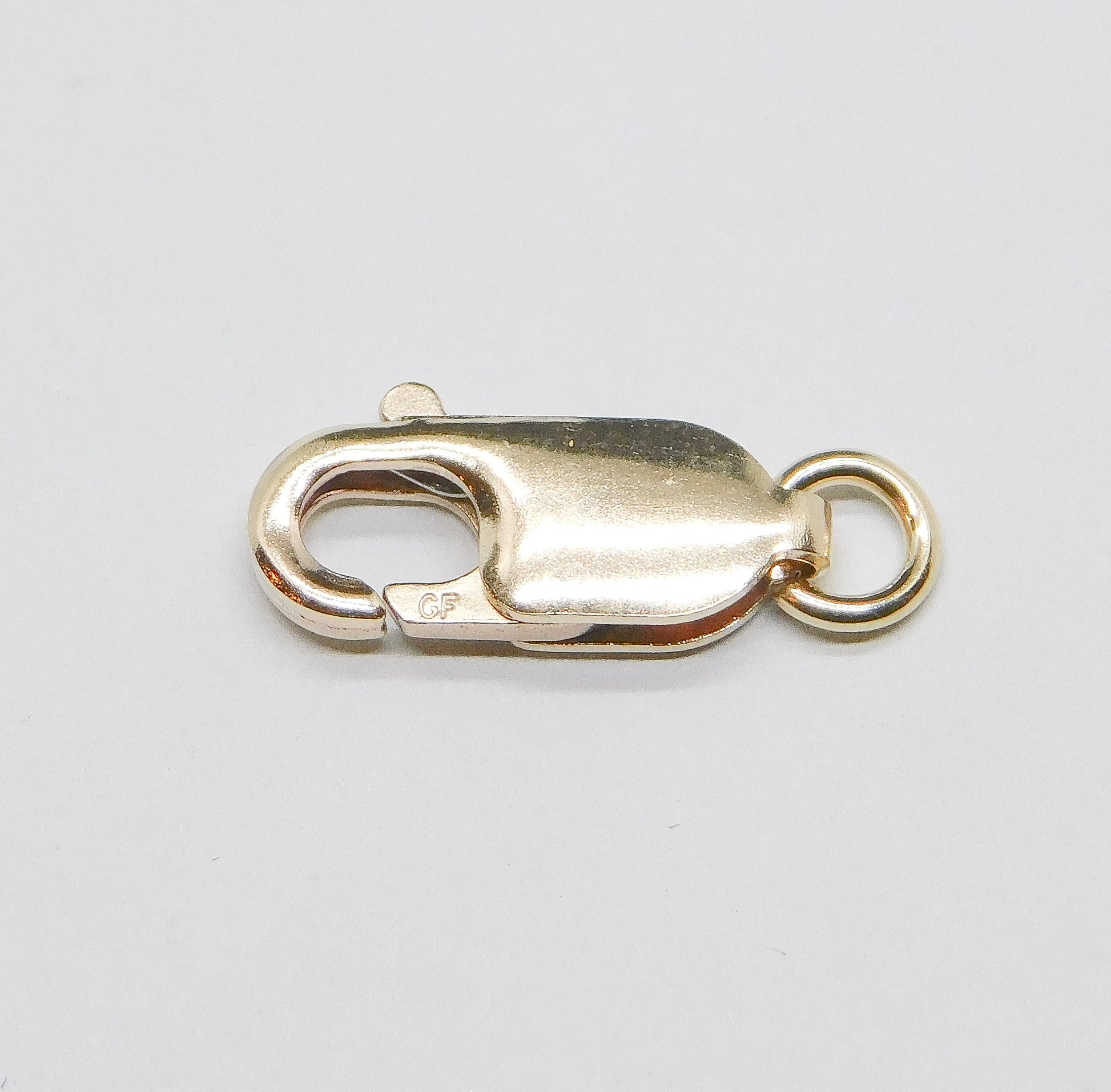 GOLD FILLED ELONGATED LOBSTER CLASP 14x5MM WITH RING. SOLD IN PACKAGES OF 1. ITEM #30154