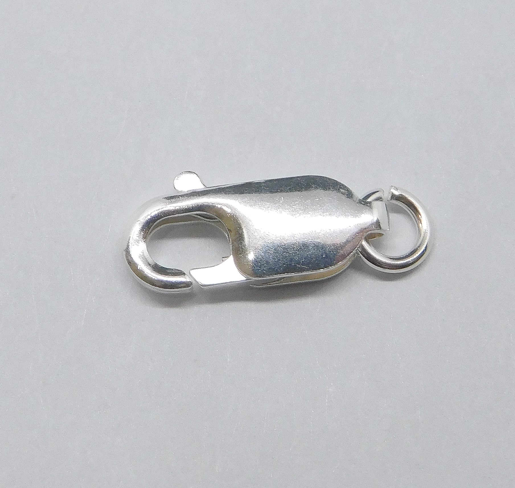 STERLING SILVER ELONGATED LOBSTER CLASP 14x5MM WITH RING. SOLD IN PACKAGES OF 1. ITEM #20243