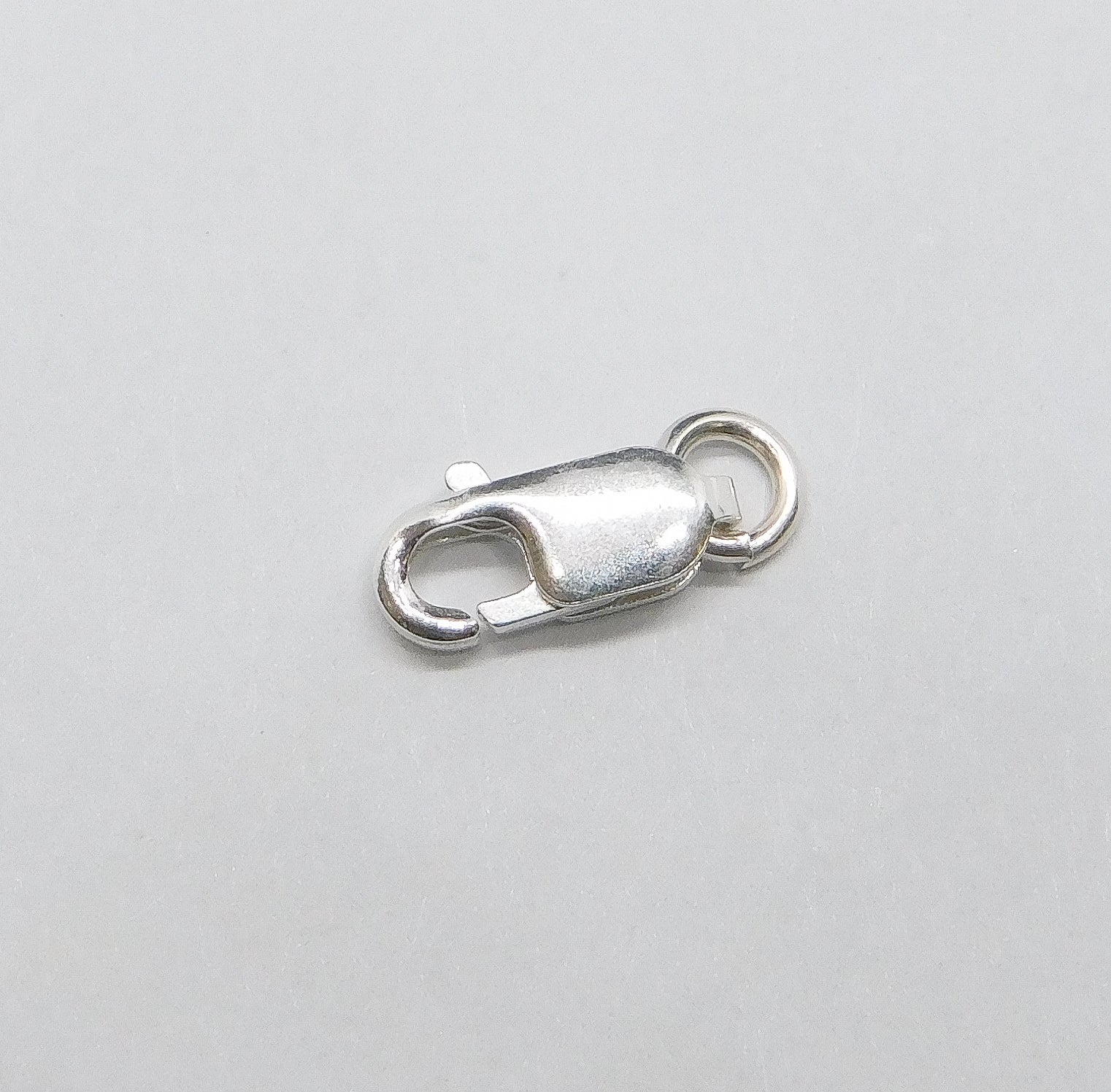 STERLING SILVER ELONGATED LOBSTER CLASP 8x3MM WITH RING. SOLD IN PACKAGES OF 1. ITEM #20248