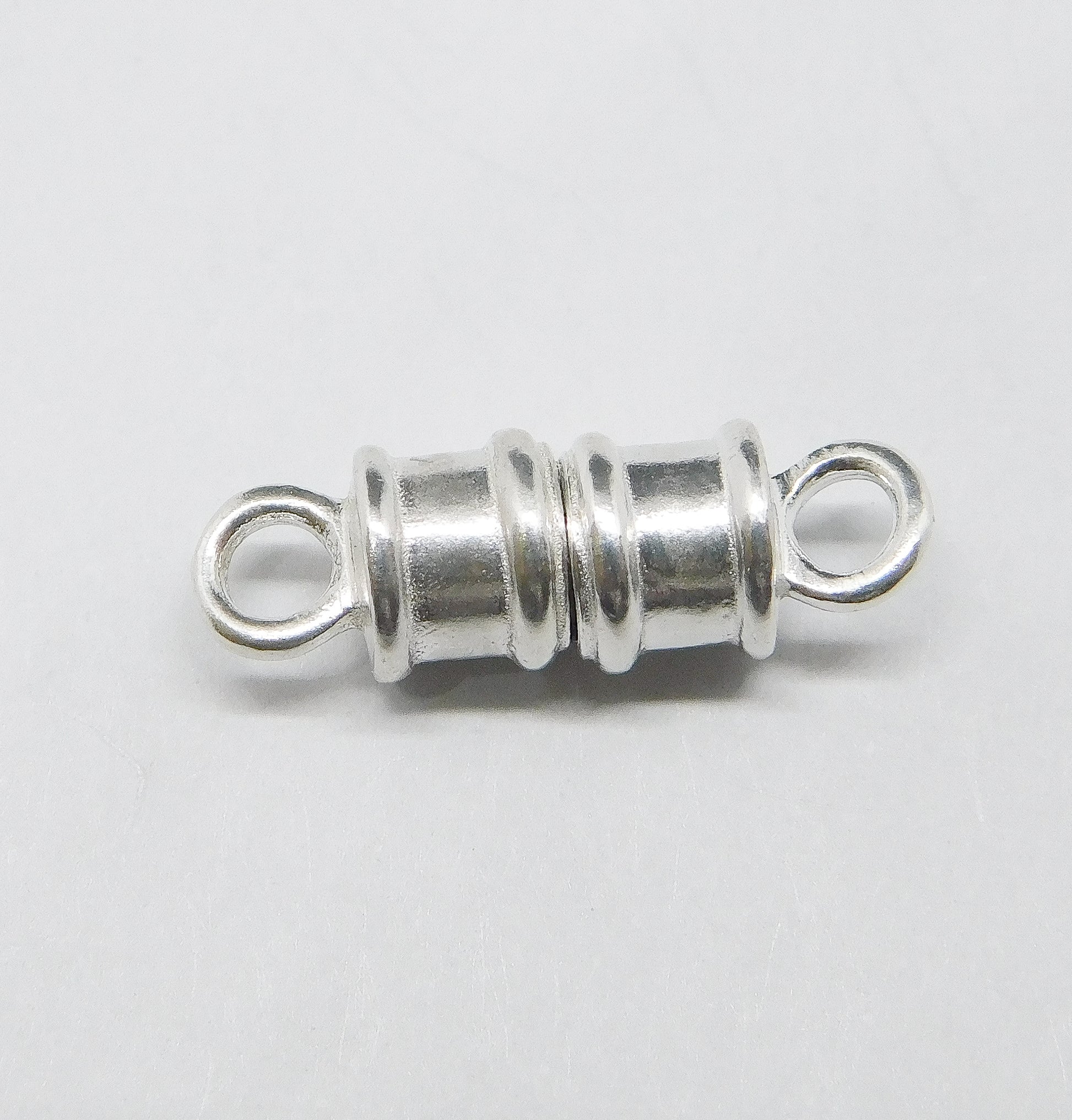 STERLING SILVER MAGNETIC RIDGED BARREL CLASP 6x10MM. SOLD IN PACKAGES OF 1. ITEM #20254
