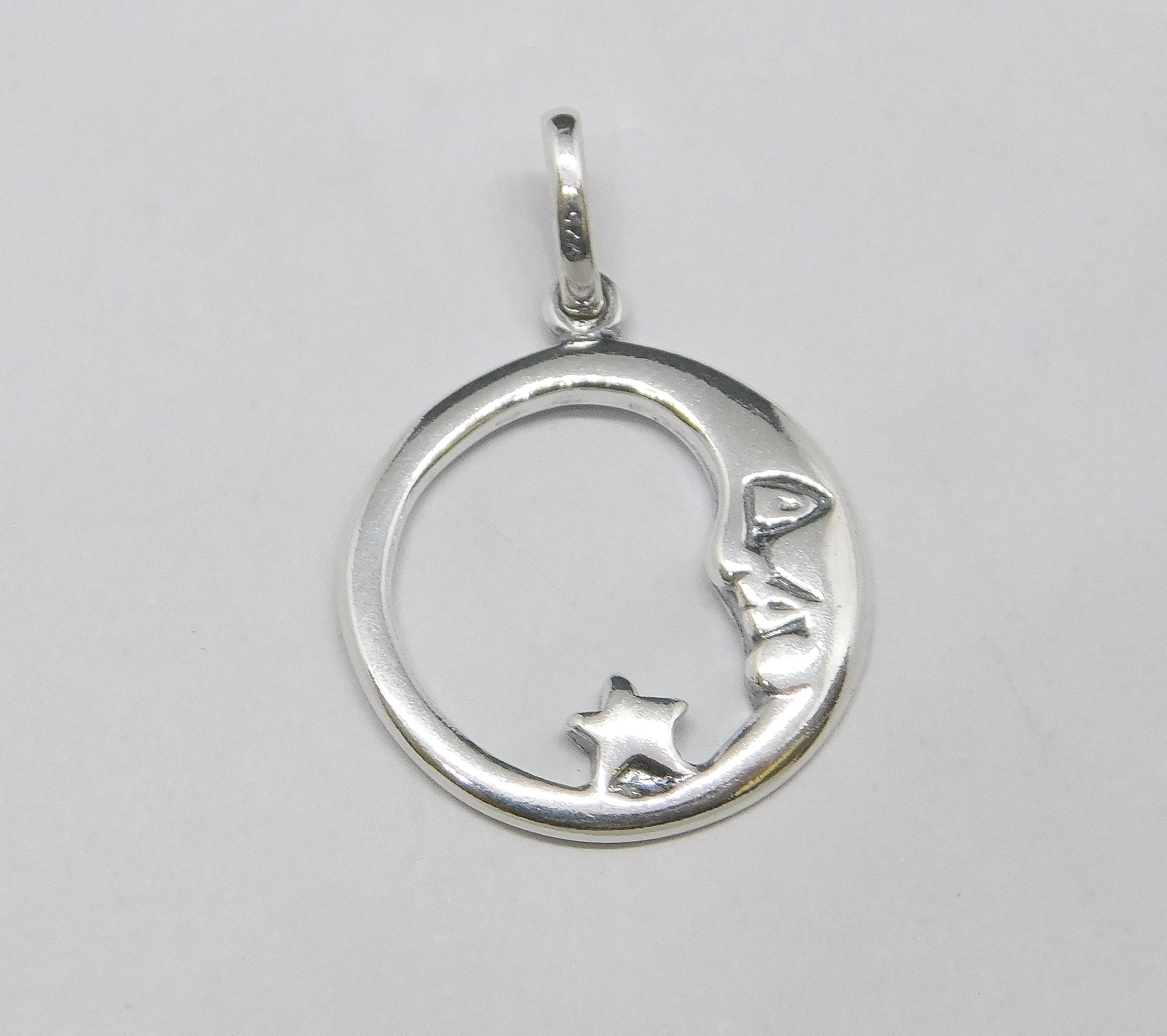 STERLING SILVER MOON AND STAR CHARM 17MM WITH RING. SOLD IN PACKAGES OF 1. ITEM #20304