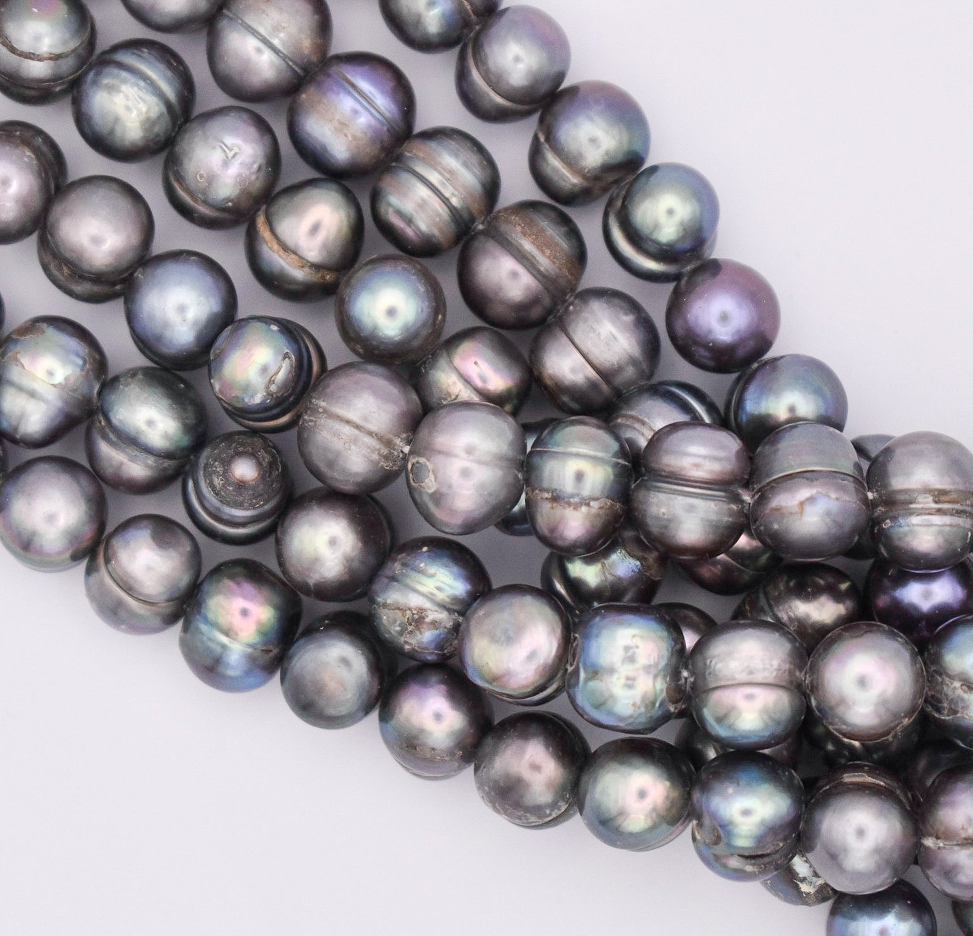 POTATO PEARLS 12MM GREY AB. 15" STRAND