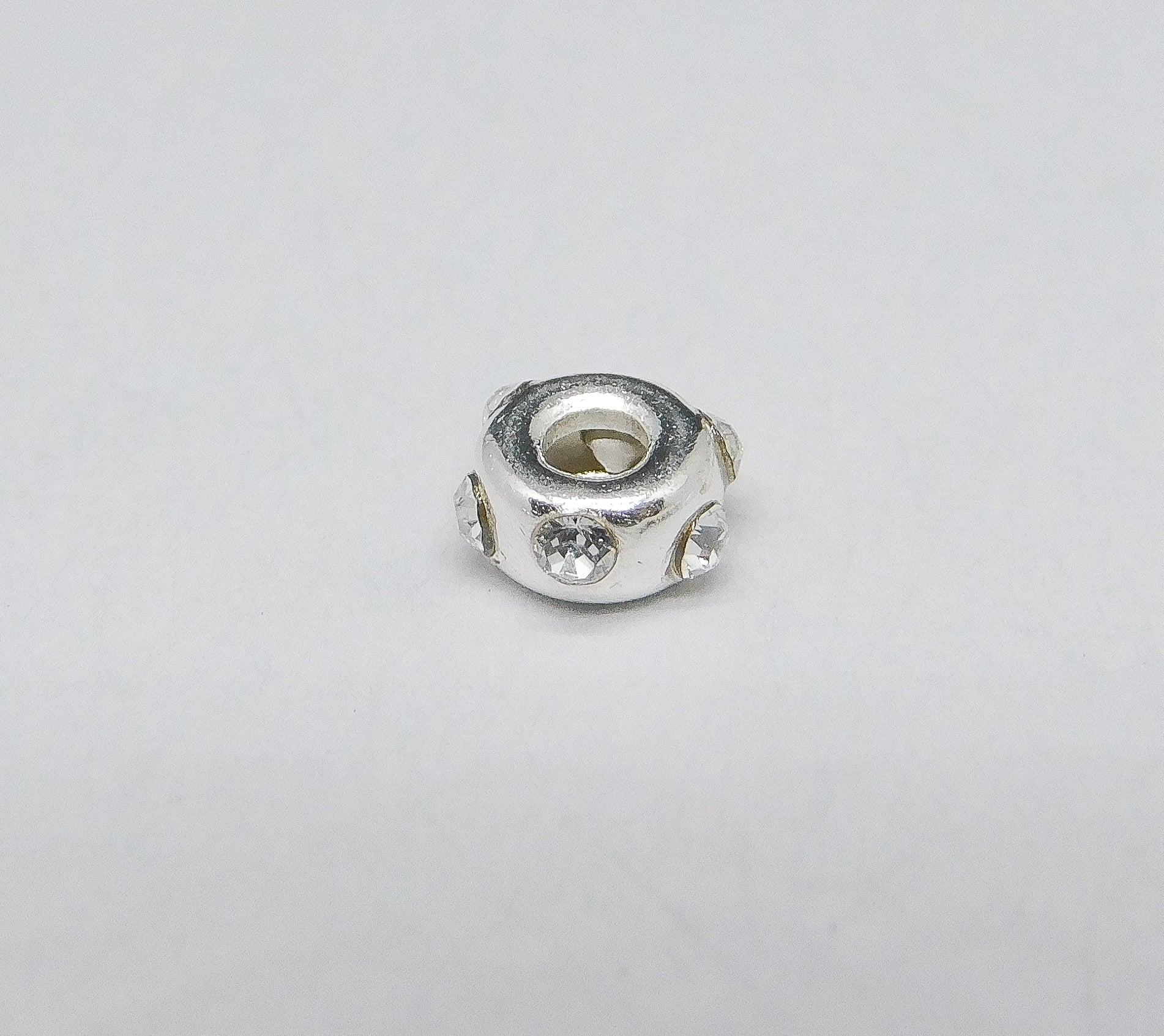 STERLING SILVER RONDELLE BEADS WITH CRYSTALS 4MM. SOLD IN PACKAGES ON 1. ITEM #20299