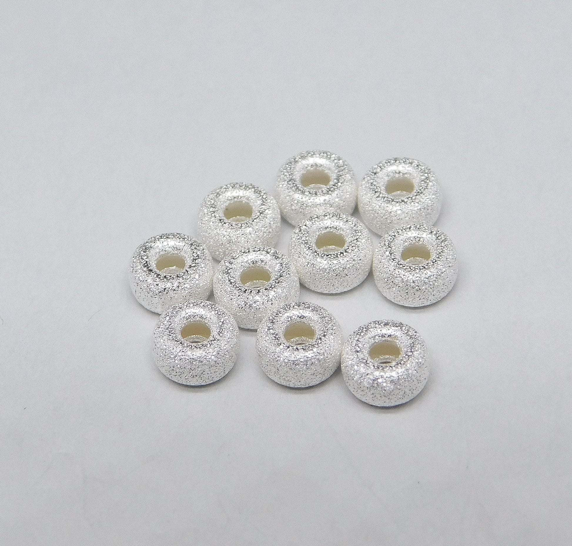 STERLING SILVER STARDUST RONDELLE BEADS 4MM (FROSTED MAY RUB OFF). SOLD IN PACKAGES OF 10. ITEM #20317