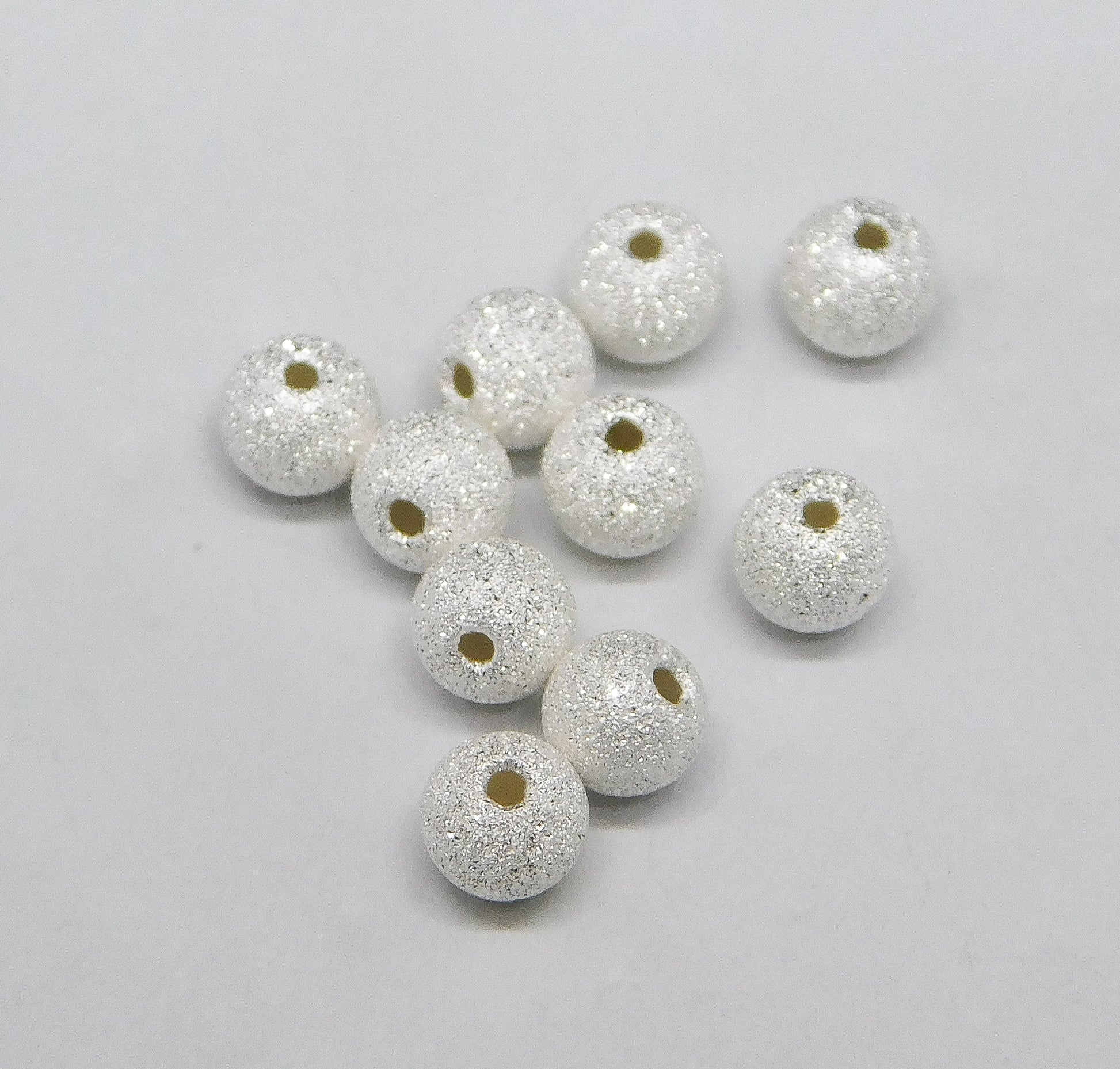 STERLING SILVER STARDUST ROUND BEADS 4MM (FROSTED MAY RUB OFF). SOLD IN PACKAGES OF 10. ITEM #20321