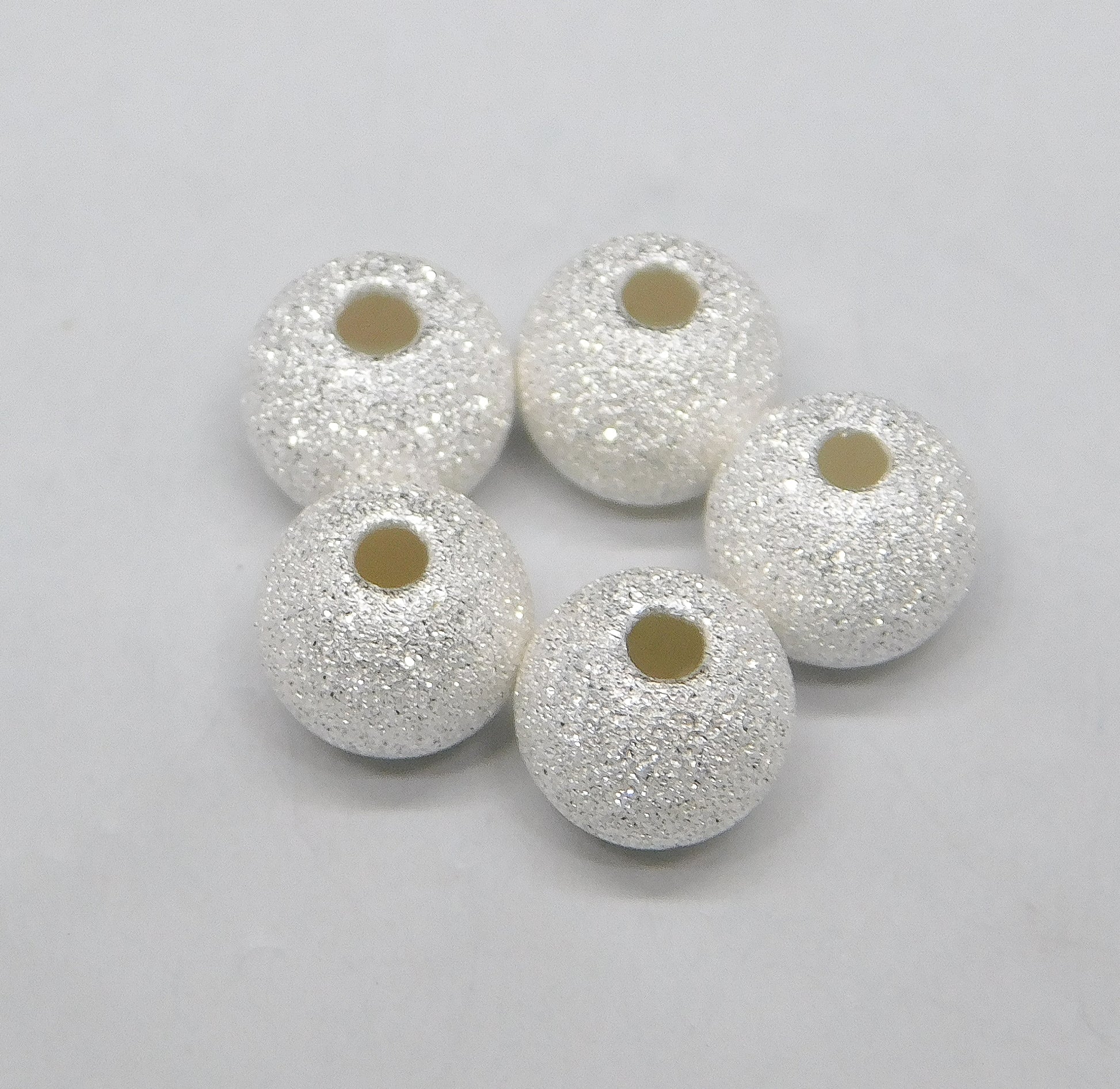 STERLING SILVER STARDUST ROUND BEADS 6MM (FROSTED MAY RUB OFF). SOLD IN PACKAGES OF 5. ITEM #20323