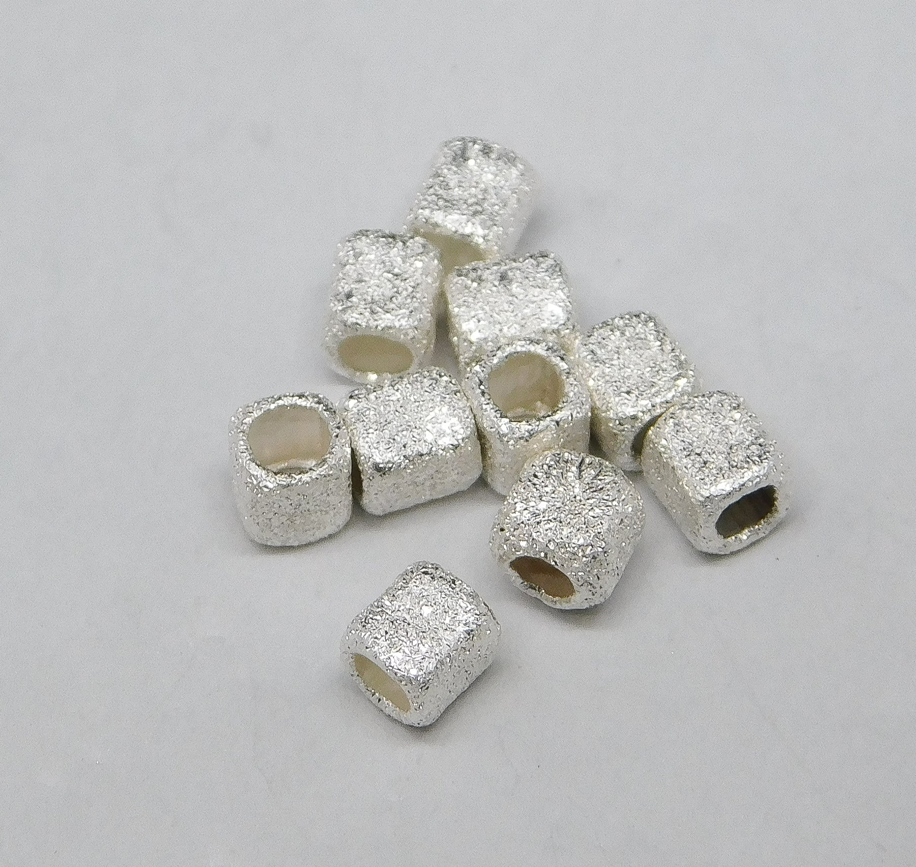STERLING SILVER STARDUST SQUARE BEADS 3MM (FROSTED MAY RUB OFF). SOLD IN PACKAGES OF 10. ITEM #20326